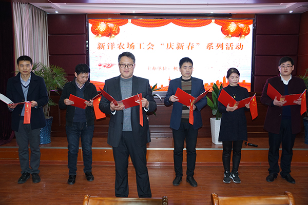 鞭炮聲聲辭舊歲,張燈結(jié)彩迎新年。2月11日下午,新洋農(nóng)場工會組織開展才藝展示、摜蛋比賽、現(xiàn)場抽獎等“慶新春”系列活動。黨委書記陳守軍,場長潘元海,紀委書記、工會主席戴學(xué)林,財務(wù)總監(jiān)謝翠英,場長助理王煜明出席活動現(xiàn)場并全程參與,機關(guān)全體工作人員參加了活動。
