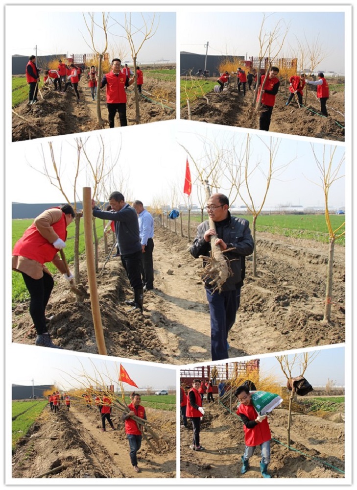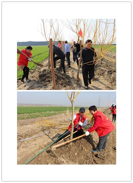 經(jīng)過一個上午的辛勤勞動,兩長排整齊劃一的樹苗躍然眼前,特別是此次栽植的樹種為黃金槐,更是一片春意盎然,美不勝收。