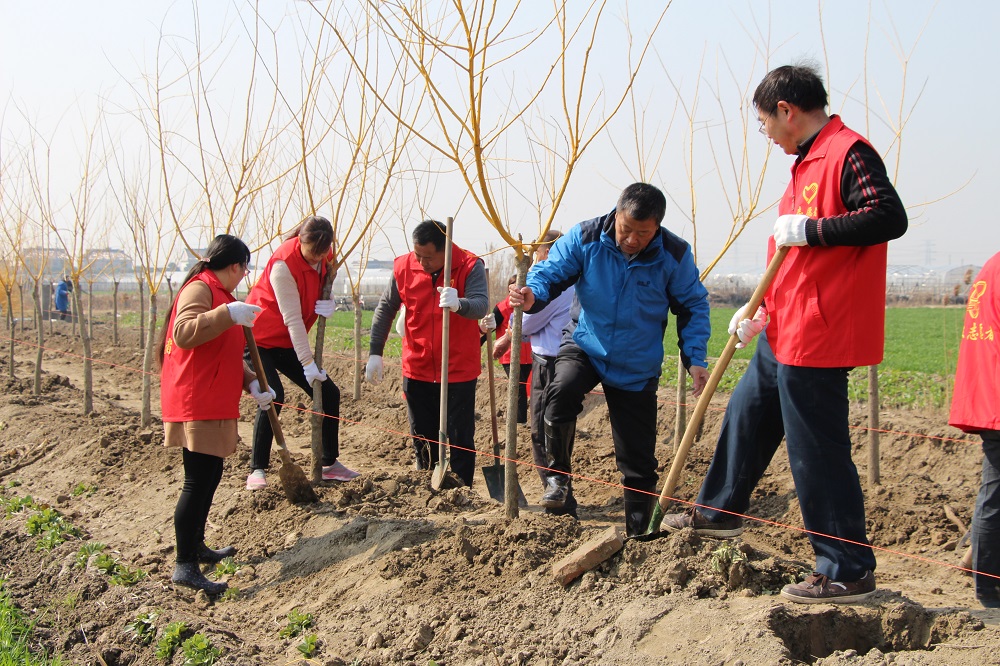 大家自帶工具,分工合作,有的扶樹、有的培土、有的踩實(shí)、有的澆水,還有的運(yùn)送樹苗、化肥;整個活動現(xiàn)場雜而不亂,有條不紊,志愿者們一個個干勁十足,將一棵棵充滿生機(jī)與希望的樹苗植入泥土中。