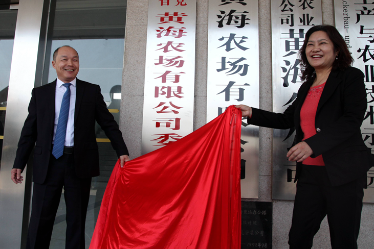 4月1日,中國共產(chǎn)黨江蘇省黃海農(nóng)場有限公司委員會和江蘇省黃海農(nóng)場有限公司、中國共產(chǎn)黨江蘇省黃海農(nóng)場有限公司紀律檢查委員會、江蘇省黃海農(nóng)場有限公司工會委員會正式掛牌。標志著農(nóng)場企業(yè)化改革邁出了實質(zhì)性的、具有里程碑意義的一步,農(nóng)場的發(fā)展也將翻開嶄新的一頁。黃海農(nóng)場有限公司黨委書記王亦勤致辭,黃海農(nóng)場有限公司董事長、總經(jīng)理單祥忠主持掛牌儀式。王亦勤、單祥忠和集團公司片區(qū)財務總監(jiān)謝翠英及黃海農(nóng)場有限公司領(lǐng)導薛亞林、何彥平、裴書忠、沈進松共同為公司成立剪彩。