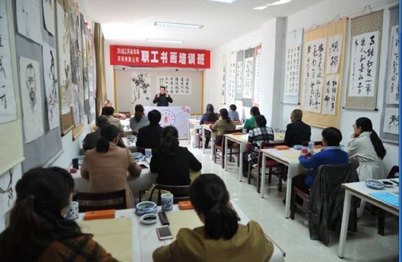 弘揚書法藝術(shù),進一步引導(dǎo)和提升公司書畫愛好者的創(chuàng)作水平,培養(yǎng)和發(fā)現(xiàn)更多、更優(yōu)的藝術(shù)人才。2018年4月17日,蘆花草堂書法院和淮海農(nóng)場有限公司,在職工文化活動中心書畫室共同舉辦第四屆書畫愛好者培訓(xùn)班。中國書法家協(xié)會會員、江蘇省書法家協(xié)會會員、江蘇省青年書法家協(xié)會會員、鹽城市書法家協(xié)會理事,濱海縣書畫家協(xié)會副主席左克成老師應(yīng)邀前來授課,公司近20名學員參加了當天的授課和書畫創(chuàng)作。
