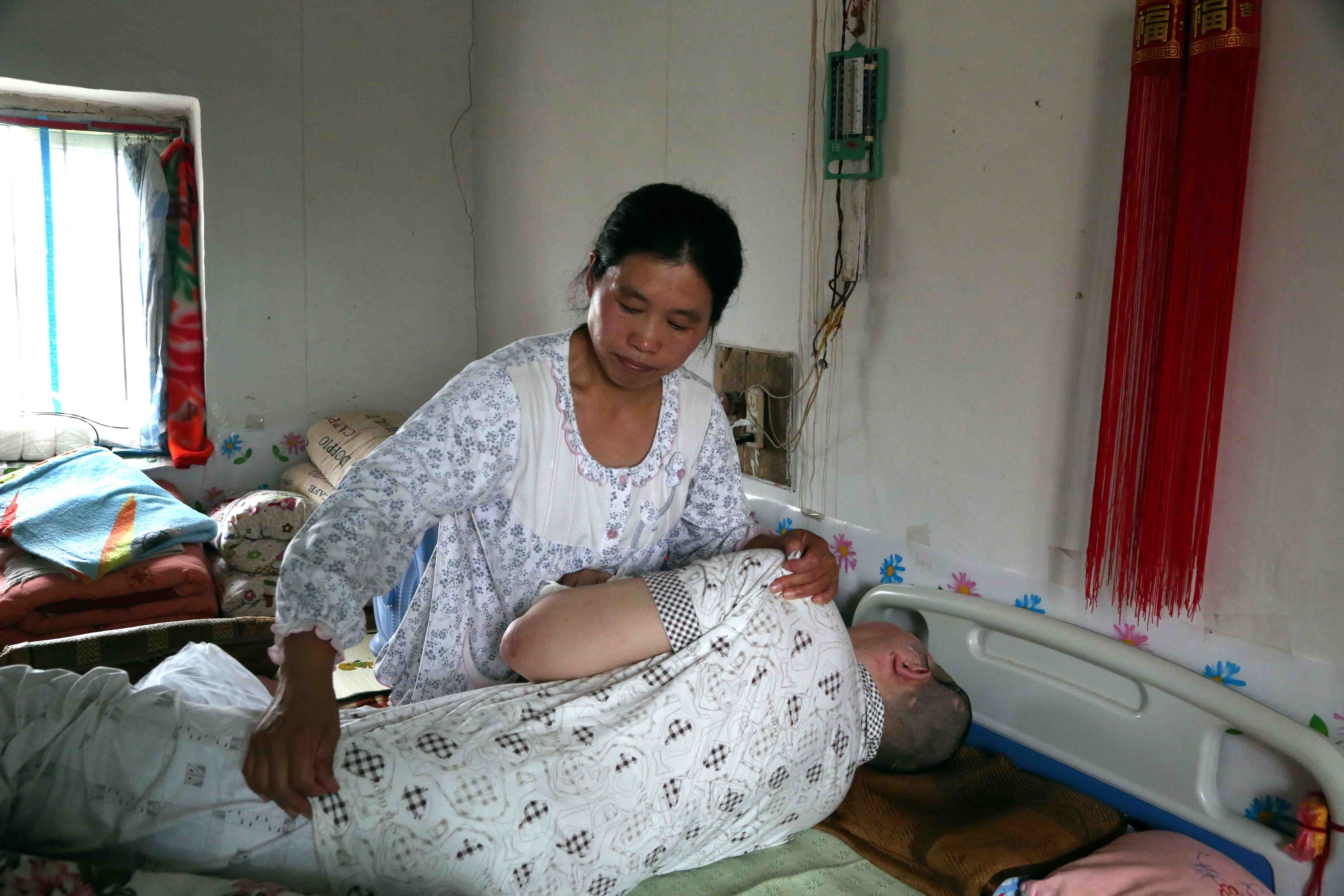 為了全身心照顧丈夫,她辭掉了工作,將丈夫接回了家。照顧病人本就是個苦差事,更何況是要照顧一個沒有意識的植物人,這談何容易。給丈夫喂飯就是王紅面臨的第一個難題,植物人的吞咽能力幾乎為零,只能吃些流食,得靠針筒一點一點的打進去,一頓飯喂下來,她的手麻得失去了知覺。為了給丈夫翻身,她哭過好幾回,瘦小的她經(jīng)過了無數(shù)次的練習摸索才掌握了些技巧,終于不用別人幫忙也可以給丈夫翻身了。