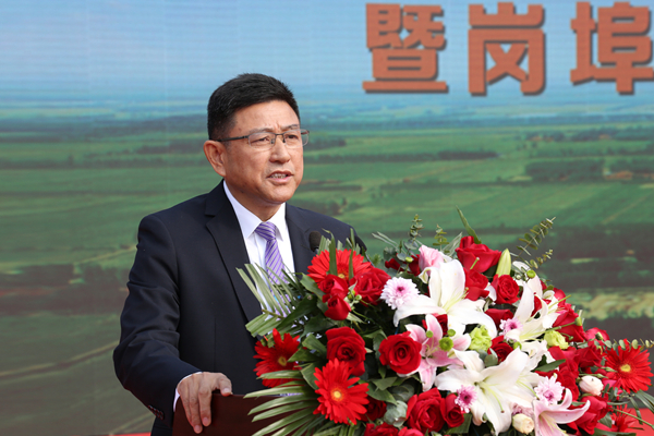 連云港市委副書記、海州區(qū)委書記萬(wàn)聞華在講話中充分肯定了農(nóng)墾農(nóng)業(yè)“國(guó)家隊(duì)”的作用,她指出,60年來(lái),崗埠農(nóng)場(chǎng)牢牢堅(jiān)守保障糧食安全、支援地方建設(shè)的歷史使命,始終堅(jiān)持以農(nóng)為本、富民興場(chǎng),經(jīng)過(guò)幾代人的俯身耕耘、艱苦創(chuàng)業(yè),打造了一個(gè)現(xiàn)代化的國(guó)有農(nóng)場(chǎng)和重要農(nóng)產(chǎn)品生產(chǎn)基地,國(guó)家級(jí)優(yōu)質(zhì)種子、鮮切花、綠化苗木、特色水產(chǎn)等綠色有機(jī)農(nóng)產(chǎn)品遠(yuǎn)近聞名,繪就了一幅產(chǎn)業(yè)強(qiáng)、群眾富、生態(tài)美的嶄新畫卷,收獲“江蘇農(nóng)墾交通第一場(chǎng)”的美譽(yù),為地方現(xiàn)代農(nóng)業(yè)建設(shè)和經(jīng)濟(jì)社會(huì)發(fā)展作出了重要貢獻(xiàn),與地方人民建立了深情厚誼。