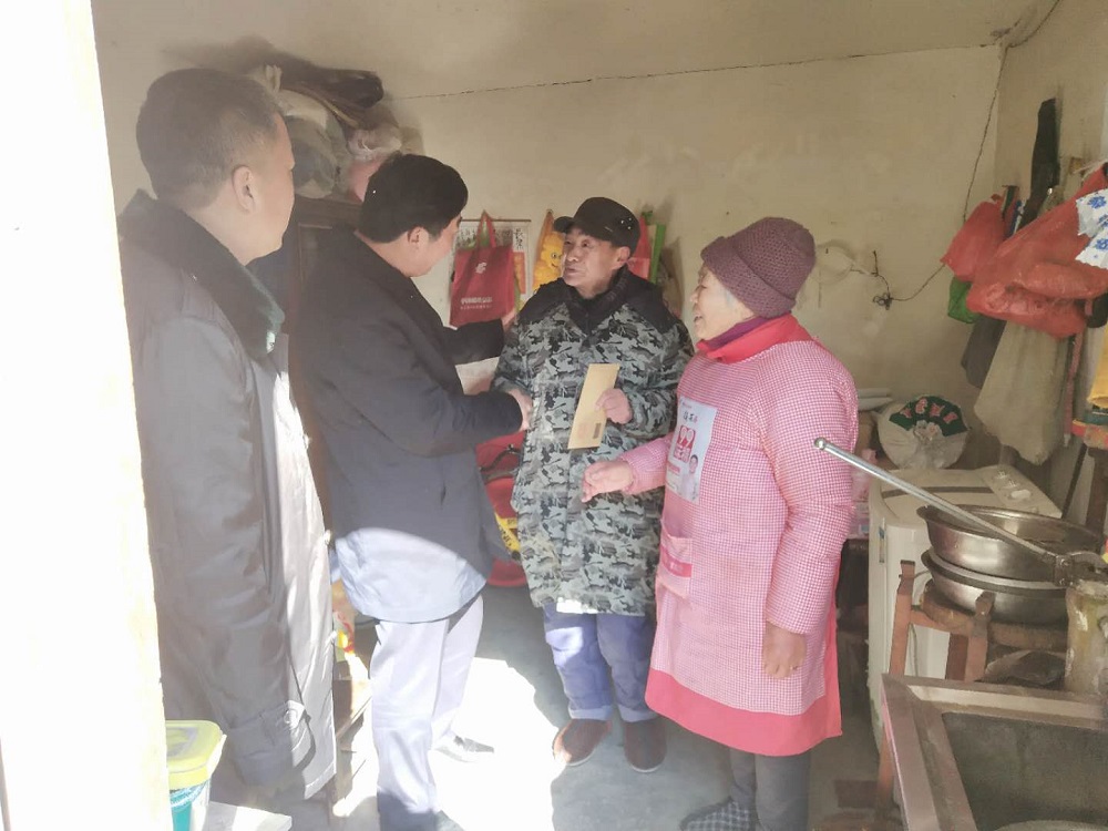 隨后,胡兆輝一行來到了農(nóng)場軍轉(zhuǎn)干部肖軍的家中。肖老曾參加過抗美援越戰(zhàn)爭,今年被查出患有腫瘤,住院治療,光自費(fèi)部分就話費(fèi)近2萬。胡總勉勵(lì)老人要增強(qiáng)戰(zhàn)勝疾病的信心和決心,以樂觀向上的心態(tài)積極生活,早日度過難關(guān)。