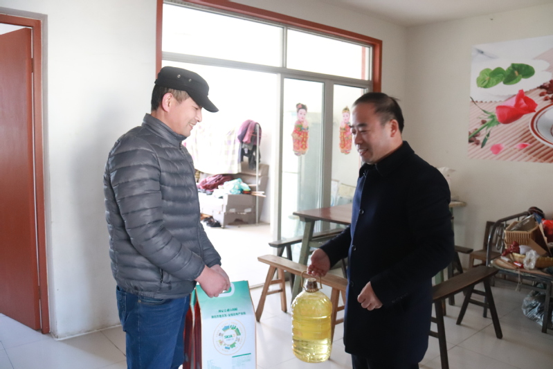 黨委書記、董事長朱江勝帶著濃濃的關切之情看望了唐國忠家庭,給他送上米、油等慰問品和節日的祝福。在與唐國忠心連心的交流中,朱江勝認真傾聽了他目前遇到的困難及幫扶需求,詳細詢問了他身體及生活情況,特別是家里老人的身體狀況、孩子的學習情況,鼓勵他要勇于戰勝困難,積極樂觀的面對生活,囑咐他要注意身體,保持良好的心態,堅定信心,早日脫貧。
