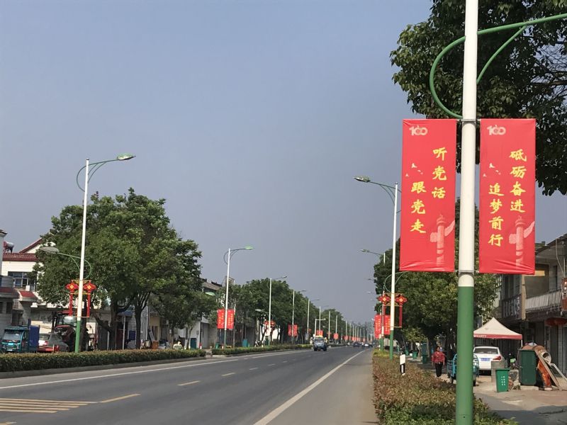 早在5月份,一組熱烈慶祝中國共產黨成立100周年的綠雕就將辦公樓前的花壇裝點一新。根據慶祝建黨100周年氛圍營造方案,近期,施工人員抓緊對350省道小城鎮段、裕源大道、建場路的燈桿上安裝印有“中國夢”字樣的中國結景觀燈,同時穿插“不忘初心,牢記使命”、“砥礪奮進,追夢前行”、“聽黨話,跟黨走”以及企業精神的道旗和宣傳標語等,營造出一派紅色、熱烈、喜慶、向上的濃厚氛圍