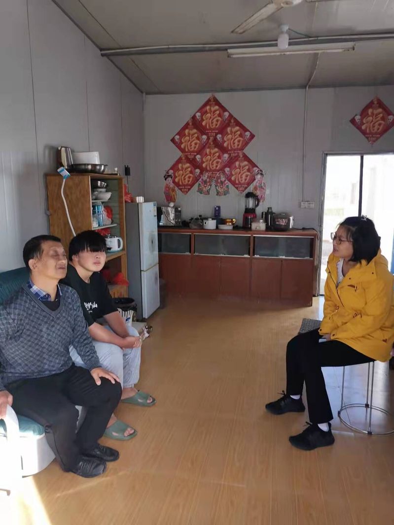 她出月子后,于10月17日帶著慰問金、大米、食用油等和李書記一起來到虞道虎家探望。通過深入交流了解到,他媽媽是外地人,在他4歲的時候拋下他就再也沒有回來,他爸爸身體殘疾又患有糖尿病伴隨著并發(fā)癥,致使視力嚴重下降模糊看不清,原先還能靠開三輪車帶乘客掙點微薄的生活費,現(xiàn)如今也只能作罷,面對如此不堪重負的家庭生活和上學的雙重壓力,家庭收入幾乎為零,經(jīng)過村、鎮(zhèn)的申請,縣政府相關部門的審批,最終他爸爸獲得了殘疾補貼和民政低保收入,家庭全部收入也僅限于此。“黨員媽媽”王靖與虞道虎的交談中,得知他本人對未來很有想法,目前就讀于揚州技師學院,五年制大專,數(shù)控專業(yè),他計劃好好學習順利畢業(yè)后將專轉本,繼續(xù)學歷深造以便日后好去蘇南就業(yè),考慮蘇南相對高工資可以為窮困的家庭和年邁的父親減輕壓力。聽此,王靖很欣慰,勸導父親和虞道虎,困難是有,但是暫時的,只要虞道虎肯努力學習,保持積極樂觀的心態(tài),未來一定可期。