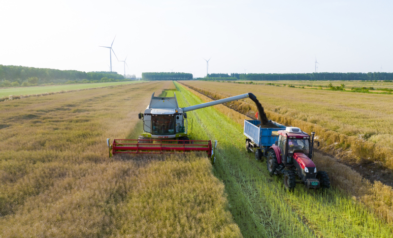 滾滾麥浪閃金光,粒粒飽滿豐收時。眼下,新洋油菜、小麥相繼進(jìn)入成熟收獲期。伴隨著機(jī)器轟鳴聲,一臺臺聯(lián)合收割機(jī)正“趟開”麥浪、油菜田塊來回收割,一排排小麥和油菜被卷入機(jī)器脫粒歸倉,一幅“夏忙豐收圖”在新洋大地徐徐展開。