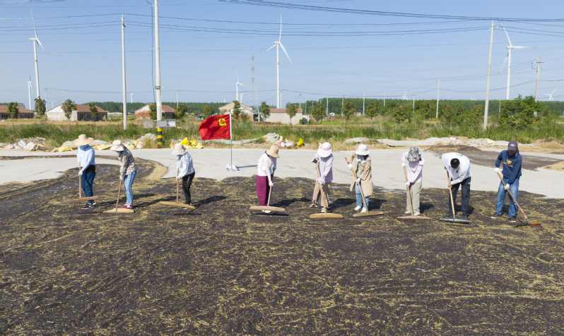 今年的“三夏”支農(nóng)隊(duì)伍里,出現(xiàn)了很多新面孔,有剛剛?cè)肼毜那嗄甏髮W(xué)生,有積極參與“三夏”服務(wù)的退役軍人,志愿者們不喊苦不喊累,隨時聽從“三夏”指揮部指揮調(diào)度。尤其是場頭活躍著三支女子翻曬志愿服務(wù)隊(duì),他們巾幗不讓須眉,每天往返于各大隊(duì)曬場,開展油菜翻曬工作,同時還積極應(yīng)對雨天等不利天氣,為“三夏”生產(chǎn)貢獻(xiàn)了巾幗力量。生產(chǎn)區(qū)相關(guān)負(fù)責(zé)人打趣道:“別看她們裹得嚴(yán)嚴(yán)實(shí)實(shí),干起活來都很利索。”