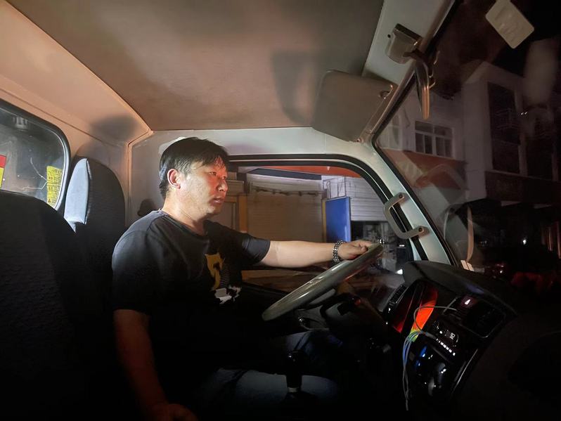 一個點一個點跑,一桶一桶裝,一車一車卸。戴玉剛對每個清運點的位置熟悉得不能再熟悉,一天作業下來能跑40多公里。當車里垃圾處理完畢,他們又開始洗車刷車……等到都弄干凈了才回家吃點東西,再睡上一覺。