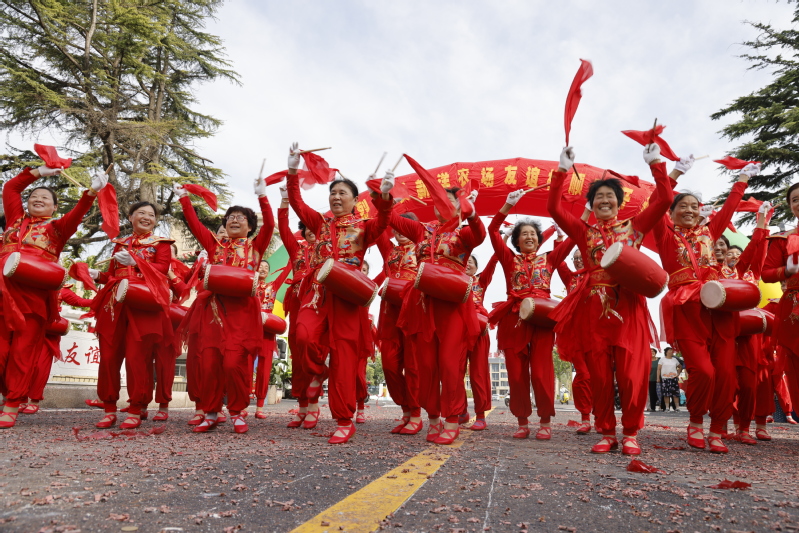腰鼓是中國(guó)傳統(tǒng)民族棰擊膜鳴樂(lè)器,歷史悠久,發(fā)音脆亮。豪邁粗獷的動(dòng)作變化,剛勁奔放的雄渾舞姿,深受人民群眾喜愛(ài)。成為人們自?shī)首詷?lè)的一種文化形式,在民間廣泛流傳。為了弘揚(yáng)優(yōu)秀的傳統(tǒng)文化,新洋也成立了腰鼓隊(duì)。從最初的寥寥數(shù)人到現(xiàn)在56人已具規(guī)模。從最初只為鍛煉身體到如今參加各類(lèi)文藝演出,經(jīng)過(guò)組織、訓(xùn)練和磨合,已然成為一張新洋文化名片。