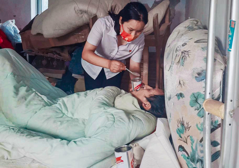 云臺農(nóng)場張圩居委會所轄小糧地居民點,地理位置偏僻,是個只有5 戶人家的待撤并村莊2022年8月9日,在“四個百”活動日常走訪中,當(dāng)居委會走訪到小糧地居民點曹子牛家時,發(fā)現(xiàn)昏暗的房間內(nèi)陣陣異味撲鼻而來。獨居在此的民曹子牛,起夜從床上不慎跌落在地,造成意識模糊講不出話來,大小便失禁,生活無法自理,成了一名“失能人”。作為居委會的幫扶對象,曹子牛一直是村子里讓人頭疼的“老大難”。年輕時候的曹子牛常年游手好閑、酗酒成性,喝多了就家暴妻子孩子,2010年、2018年,他先后兩次因為酒駕摔傷,導(dǎo)致左腿粉碎性骨折、腰部受傷,妻子頭部嚴(yán)重受傷。厄運接踵而至,讓妻兒無法忍耐,先后離開了家由于平日的言行,加之親屬能力有限無人愿意照料他這給張圩居委會黨支部書記徐洪敏出了一道大難題,這燙手的山芋到手了就沒有丟掉的道理,徐書記沒有絲毫的猶豫,她立即成立了以她和居委會黨支部委員段萬江同志、小糧地轄區(qū)網(wǎng)格單元長顧林國同志為成員的專項幫扶小組,第一時間為曹子牛送去了米、面、水、雞蛋、八寶粥、隔尿墊、尿不濕等食物生活必需品,并看守照料曹子牛。照料這樣的失能人難度可想而知,而這位90女書記愿意帶著大家干這種又臟又累伺候人的活,更是難以想象!面對滿屋的異味,她連眉也沒皺一下,不嫌臟、不怕累,帶領(lǐng)幫扶小組上前給曹子牛喂水喂藥、喂飯,處理他的大小便,換洗床鋪,打掃房間真正將群眾視為自己的親人去照料,去愛護照料曹子牛生活的同時,她也沒有停止為曹子牛爭取援助的腳步。她積極聯(lián)合轄區(qū)派出所和有關(guān)部門,想方設(shè)法聯(lián)系他的親屬,苦口婆心的勸說,幫助協(xié)調(diào)矛盾糾紛,積極申請民政救助,聯(lián)系海州區(qū)殘聯(lián)上門幫助他評殘,為曹子牛申請重殘補助讓曹子牛真真切切地感受到黨的關(guān)懷。