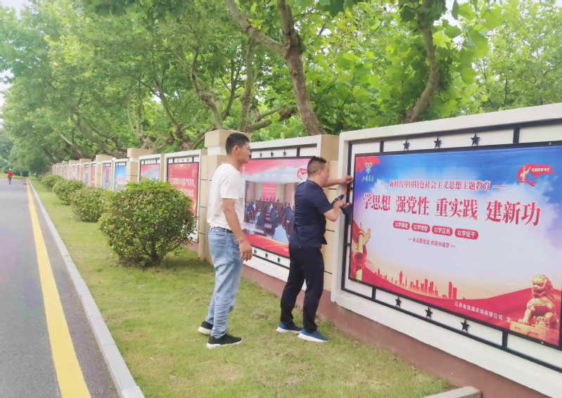 在線下,在淮海大地報(bào)、櫥窗開設(shè)主題教育專欄,精心制作34塊主題教育文化墻,將農(nóng)場(chǎng)公司主題教育開展以來有關(guān)的活動(dòng)和主題教育宣傳標(biāo)語,以圖文并茂的形式進(jìn)行展示;在農(nóng)場(chǎng)公司沿路和居民人流量大的公眾場(chǎng)所,以及分場(chǎng)社區(qū)布展了40多條紅色橫幅,顯著展示“以學(xué)鑄魂、以學(xué)增智、以學(xué)正風(fēng)、以學(xué)促干”等主題教育宣傳相關(guān)標(biāo)語。訂購《習(xí)近平著作選讀》等學(xué)習(xí)書籍近20種,發(fā)放至黨委理論學(xué)習(xí)中心組成員及各基層黨組織學(xué)習(xí)充電;組織主題教育相關(guān)知識(shí)競(jìng)賽2次,近百人參與了應(yīng)知應(yīng)會(huì)理論知識(shí)測(cè)試活動(dòng)。主題教育活動(dòng)的大力推進(jìn),增強(qiáng)了黨員干部和職工群眾對(duì)主題教育的知曉度和關(guān)注度。