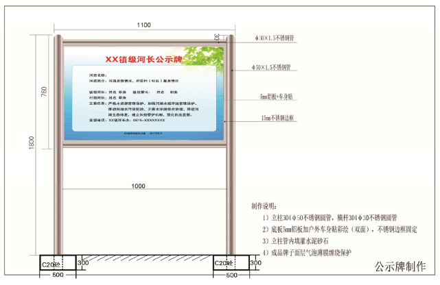 1、公示牌底板:1000*700mm,5mm鋁板;