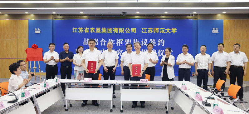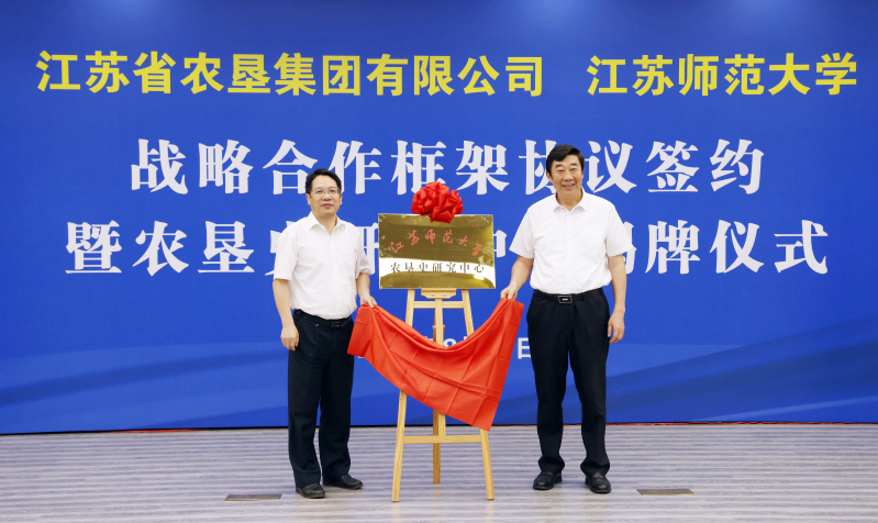 8月10日上午,集團公司與江蘇師范大學戰(zhàn)略合作框架協(xié)議簽約暨農(nóng)墾史研究中心揭牌儀式在徐州舉行。集團公司黨委書記、董事長魏紅軍,江蘇師范大學黨委書記方忠出席并致辭。集團公司黨委副書記、總經(jīng)理胡兆輝與江蘇師范大學黨委副書記、校長周汝光共同為江蘇師范大學農(nóng)墾史研究中心揭牌。集團公司黨委副書記姚準明與江蘇師范大學黨委常委、副校長蔡國春共同簽署《戰(zhàn)略合作框架協(xié)議》。江蘇師范大學農(nóng)墾史研究中心主任岑紅發(fā)言。集團公司黨委委員、總會計師劉克英,黨委委員、紀委書記李旭東,副總經(jīng)理劉耀武,黨委委員、副總經(jīng)理王立新,黨委委員、工會主席楊義林,江蘇師范大學黨委常委、黨委宣傳部部長孟召學,黨委常委、黨委統(tǒng)戰(zhàn)部部長、黨委辦公室主任商亮出席。