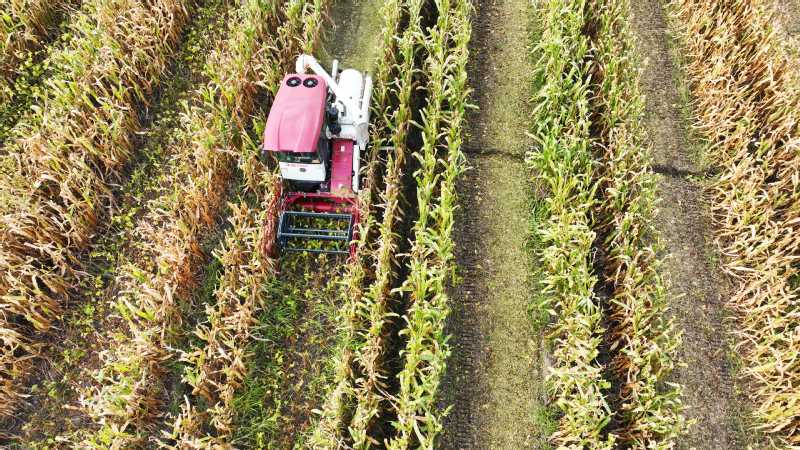 今年江蘇農(nóng)墾大豆玉米帶狀復(fù)合種植面積達12萬畝,目前大豆玉米已經(jīng)陸續(xù)成熟。圖為蘇墾農(nóng)發(fā)東辛分公司農(nóng)機在田間收割大豆。