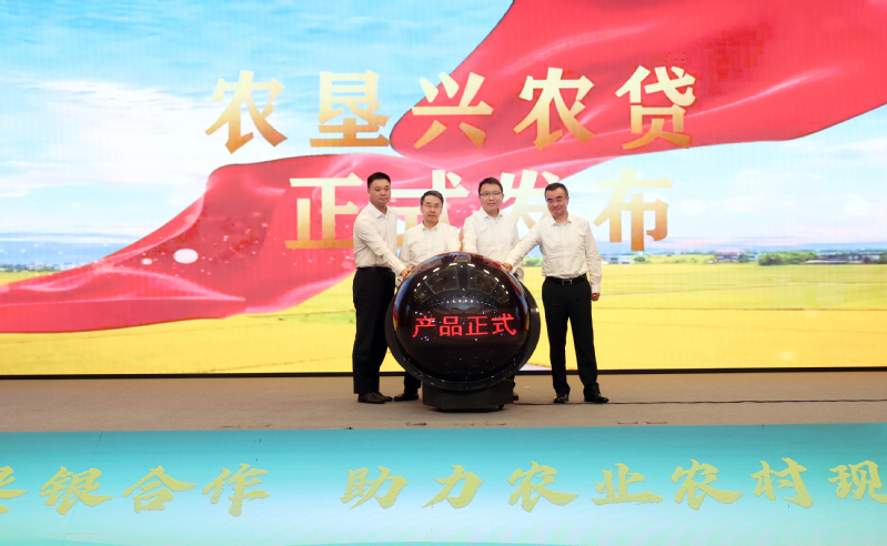 會上,吳本輝、胡建斌、姜建友、湯宇共同發布了“農墾興農貸”產品,姜建友、湯宇代表雙方簽署了戰略合作協議。