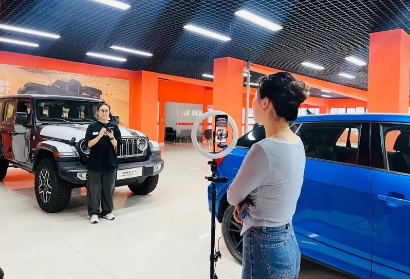 “牧馬人原廠配備全地形255 75/R18輪胎、中控觸摸屏由8寸升級(jí)到12寸、涉水深度達(dá)760mm。”蘇舜錦尚公司(Jeep4S店)主播陳佳琪正通過(guò)直播間為客戶360°全方位展示和講解車輛配置,她耐心地解答客戶問(wèn)題,1名客戶已成功預(yù)約進(jìn)店。