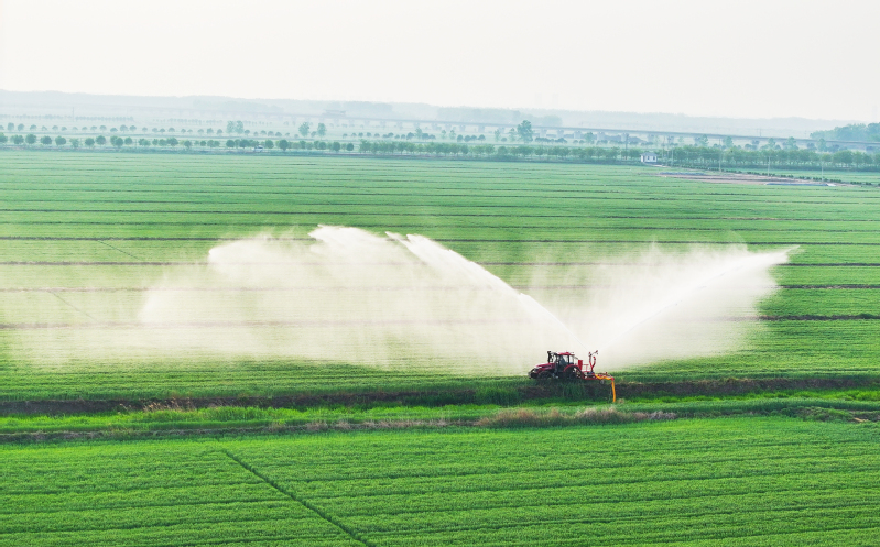 在蘇墾農發白馬湖分公司小麥田間,農機手正熟練操作著無人機和地面噴灌機,為冬小麥進行抗旱施肥和病蟲害防治作業。他們以科技賦能農業,以辛勤汗水和智慧結晶守護著近5萬畝冬小麥茁壯成長。
