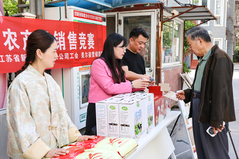 在射陽縣城都市華城小區內,新洋農場美爾姿營銷團隊開啟了一場別開生面的農產品銷售競賽。15名參賽者化身“金牌銷售員”,助力江蘇農墾優質農產品“出圈”,展現了勞動者在鄉村振興中的主力軍作用。