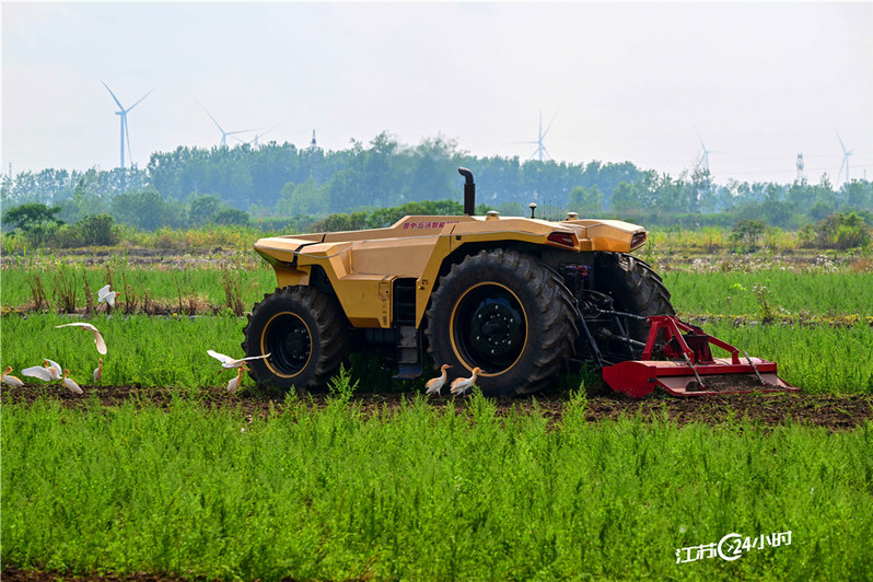 江蘇24小時|圖片新聞:寶應湖農場國產無人拖拉機引鷺鳥圍觀