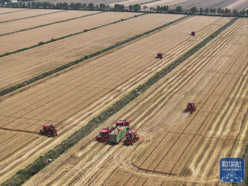 “三夏”時節(jié),在位于江蘇盱眙的江蘇農(nóng)墾三河農(nóng)場的農(nóng)田里,農(nóng)機來回穿梭,一片繁忙景象。農(nóng)人們搶抓農(nóng)時,進行夏收、夏種等作業(yè)。據(jù)介紹,三河農(nóng)場4.1萬畝小麥目前已收獲七成。