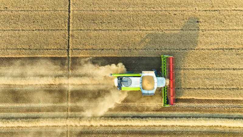6月4日,江蘇省鹽城市射陽縣,江蘇農墾新洋農場組織大型聯合收割機搶收小麥,確保顆粒歸倉。
