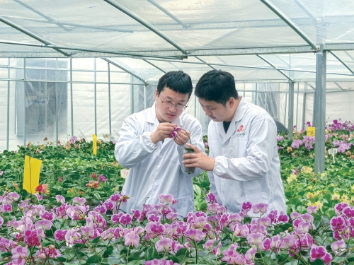 圖為農(nóng)場(chǎng)技術(shù)人員正在查看蝴蝶蘭種苗。 受訪者供圖