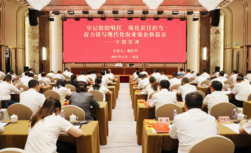 根據集團公司主題教育工作安排,6月29日下午,集團公司黨委書記、董事長魏紅軍以“牢記殷殷囑托 強化責任擔當 奮力譜寫現代化農業強企新篇章”為題講專題黨課。省委第十五巡回指導組組長榮迎春、成員張珍義到會指導。黨委副書記、總經理胡兆輝主持。魏紅軍結合學習體會和工作實際,用歷史的眼光循跡黨的發展歷程和江蘇農墾的使命任務,用發展的眼光定位江蘇農墾牢記“國之大者”、推進現代化農業強企的努力方向,用時代的眼光闡釋新時代農墾人的責任與擔當。魏紅軍指出,要堅持以學鑄魂,在學思想中夯實信仰之基。帶著囑托學、帶著感情學、帶著責任學,在全面系統深入的理論學習中不斷增進對黨的創新理論的政治認同、思想認同、理論認同、情感認同。鑄牢對黨忠誠,牢記第一身份是共產黨員,第一職責是為黨工作,做到在黨言黨、在黨憂黨、在黨為黨,態度鮮明、行動堅決。站穩人民立場,突出群眾導向,解職工之盼、解改革之難、解發展之需,以實際行動“端穩”糧食飯碗、“托底”糧食安全。魏紅軍指出,要堅持以學增智,在強黨性中提升履職能力。不斷從習近平新時代中國特色社會主義思想中汲取奮發進取的智慧和力量,掌握其中蘊含的思想方法、工作方法。錘煉過硬政治能力,