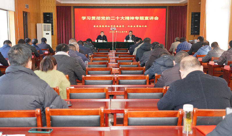12月7日下午,集團(tuán)公司黨委委員、工會(huì)主席楊義林到弶港農(nóng)場(chǎng)公司作學(xué)習(xí)貫徹黨的二十大精神專題宣講。會(huì)上,楊義林從“深刻認(rèn)識(shí)和把握黨的二十大的重大意義、深刻認(rèn)識(shí)和把握過(guò)去5年的工作和新時(shí)代10年的偉大變革、深刻認(rèn)識(shí)和把握‘兩個(gè)確立’的決定性意義、深刻認(rèn)識(shí)和把握譜寫馬克思主義中國(guó)化時(shí)代化新篇章的歷史責(zé)任、深刻認(rèn)識(shí)和把握以中國(guó)式現(xiàn)代化推進(jìn)中華民族偉大復(fù)興的使命任務(wù)、深刻認(rèn)識(shí)和把握全面建設(shè)社會(huì)主義現(xiàn)代化國(guó)家的目標(biāo)任務(wù)、深刻認(rèn)識(shí)和把握以偉大自我革命引領(lǐng)偉大社會(huì)革命的重要要求”等七個(gè)方面,并結(jié)合農(nóng)墾實(shí)際,對(duì)黨的二十大精神的豐富內(nèi)涵和核心要義進(jìn)行了宣講解讀。楊義林指出,要提高政治站位,不折不扣落實(shí)好中央、省委省政府各項(xiàng)決策部署和省國(guó)資委工作要求,按照集團(tuán)公司黨委工作安排,在全面學(xué)習(xí)、全面把握、全面落實(shí)上下功夫,持續(xù)興起學(xué)習(xí)宣傳貫徹黨的二十大精神的熱潮,切實(shí)把廣大黨員干部職工的思想和行動(dòng)統(tǒng)一起來(lái)、智慧和力量凝聚起來(lái)。要緊密團(tuán)結(jié)在以習(xí)近平同志為核心的黨中央周圍,牢記“三個(gè)務(wù)必”,堅(jiān)持“五個(gè)必由之路”,奮斗奮斗再奮斗,全力推動(dòng)黨的二十大精神在弶港落地生根、開(kāi)花結(jié)果,在江蘇農(nóng)墾現(xiàn)代化建設(shè)新征程上展現(xiàn)弶港擔(dān)當(dāng)作