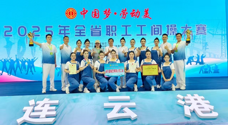 9月3日,2025江蘇省職工工間操大賽在連云港市體育中心成功舉辦。本次大賽由江蘇省總工會主辦,連云港市總工會協辦,以“中國夢·勞動美”為主題,旨在推廣職工健身、豐富職工文化體育生活。全省各地市和省部署企事業工會共17支代表隊參賽,同場競技,展現風采。集團公司工會代表隊發揮出色,工間操和排舞兩個項目均榮獲三等獎和“優秀組織獎”,實現了比賽成績與精神文明雙豐收。本次參賽隊伍由東辛農場、崗埠農場職工組成,隊員來自不同崗位,包括牧場獸醫、社區工作者、項目一線及財務工作者等。他們利用工余時間和節假日,積極備戰,刻苦訓練。比賽中,隊員們動作整齊劃一、姿態舒展有力、笑容自信昂揚,完美展現了力與美的融合,體現了農墾職工的良好精神風貌,生動詮釋了農墾人“艱苦奮斗、勇于奉獻、開拓創新”的優良傳統。一直以來,集團公司工會高度重視職工文化建設,大力推廣全民健身活動,通過組織開展工間操、運動會、球類比賽等豐富多彩的文體活動,有效促進了職工的身心健康,顯著增強了團隊凝聚力和向心力,營造了健康和諧、積極向上的墾區文化氛圍。