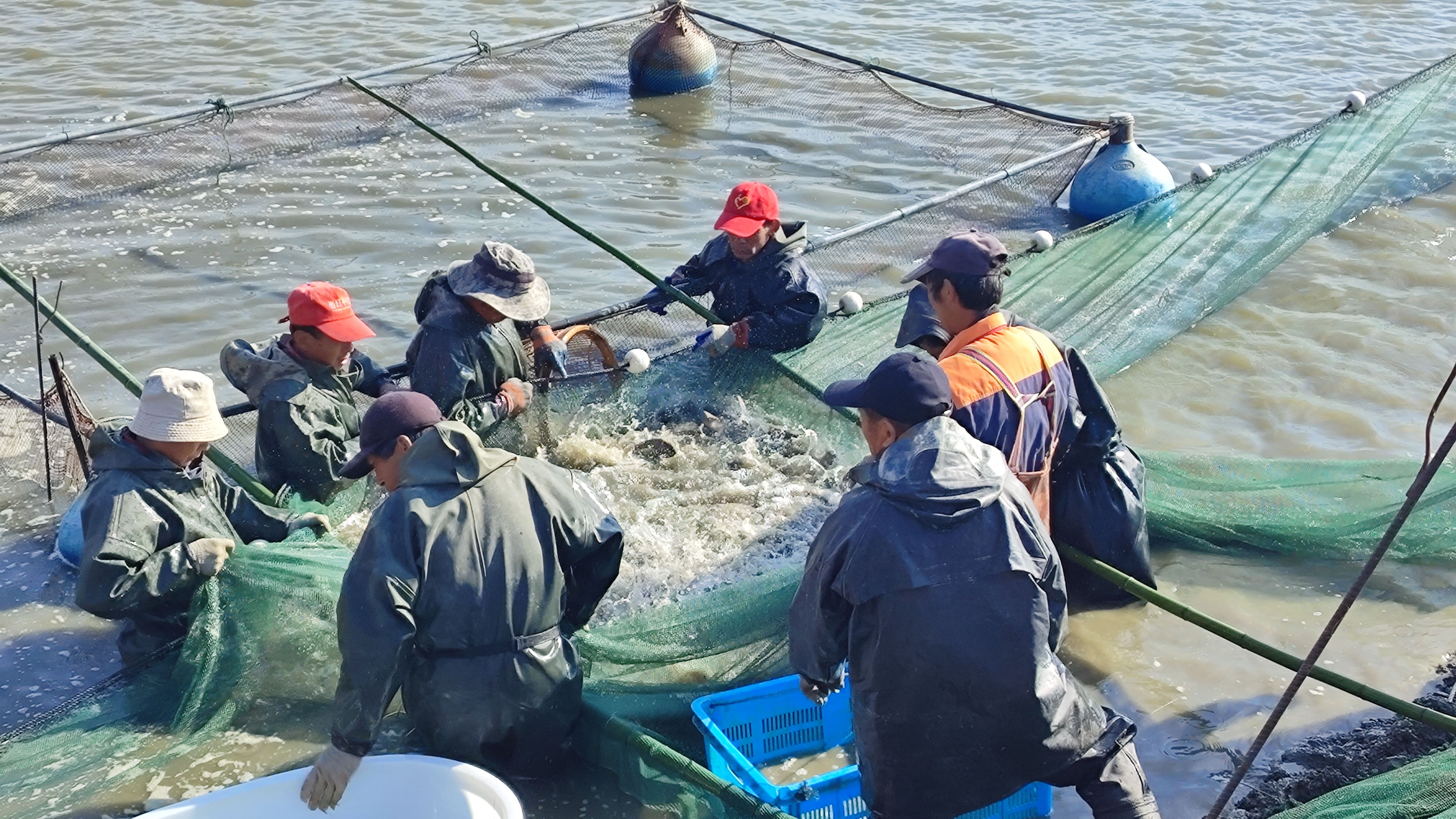 晨曦微露,蘇墾漁業養殖基地的連片池塘如鑲嵌在田壟間的藍寶石,泛著粼粼波光。養殖隊長于保華踏著晨霧走來,鞋子上還沾著帶露水的塘泥,他熟門熟路地按下智能料倉的綠色按鈕,顆粒均勻的環保配合飼料順著管道緩緩落入水中,飼料里不含抗生素、無人工添加劑,是專門為魚蝦定制的“營養餐”。“嘩——”水面瞬間炸開漣漪,數萬尾鮰魚聞聲聚攏,銀灰色的脊背在晨光中交替閃現,尾鰭掃過水面激起細碎水花,很快圍成直徑數米的“魚圈”,爭相吞吐飼料的聲響在清晨顯得格外清脆。待魚群進食正酣,于保華登上鐵皮漁船,船槳輕劃,驚得水下的對蝦不時躍出水面,銀亮的蝦殼折射出晨光,映得他眼角的笑紋都格外清晰。“你看這蝦,殼薄肉厚,彈跳力多足,鮰魚肉質緊實得能彈起來,這都是生態養出來的好東西!”誰能想到,這片如今魚蝦共生的生態塘,曾是主打傳統四大家魚的“普通塘”。因缺乏差異化優勢,水產品溢價低,公司一度陷入發展瓶頸。公司引入肉質鮮美的鮰魚,大膽嘗試鮰魚對蝦混養,卻撞上了“天敵同池”的難題:鮰魚是肉食性魚類,按傳統養殖經驗,混養必讓對蝦遭滅頂之災。當時負責技術研發的王加鵬回憶道:“少養鮰魚,難有市場話語權;少養對蝦,對蝦標粗場就沒了依托,真