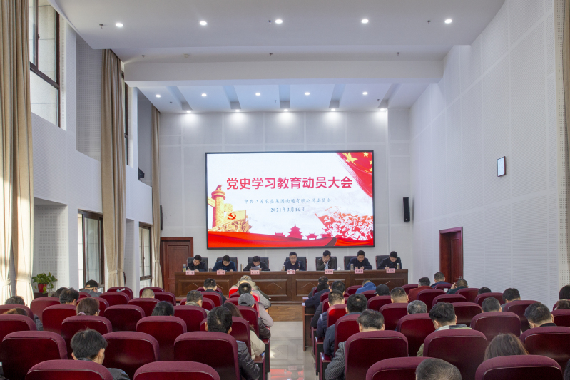 3月16日下午,蘇墾南通公司召開黨史學習教育動員會議。會議深入學習貫徹習近平總書記在黨史學習教育動員大會上的重要講話精神,落實省委、集團工作要求,在公司上下開展黨史學習教育進行動員部署。公司黨委書記、董事長、農發南通公司總經理嚴忠作動員講話。黨委副書記、總經理丁榮根主持會議。