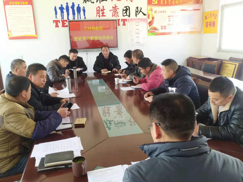 3月22日下午,淮海農(nóng)場公司二分場社區(qū)召開黨史學(xué)習(xí)教育動員部署會,深入學(xué)習(xí)貫徹習(xí)近平總書記在黨史學(xué)習(xí)教育動員大會上的重要講話精神,認(rèn)真落實(shí)農(nóng)場公司黨委決策部署,對社區(qū)開展黨史學(xué)習(xí)教育進(jìn)行安排部署。社區(qū)總支副書記傳達(dá)了農(nóng)場公司黨史學(xué)習(xí)教育動員部署會議精神并作動員講話,社區(qū)干事詳細(xì)解讀農(nóng)場公司黨委黨史學(xué)習(xí)教育實(shí)施方案。