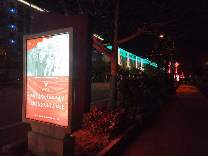 在全國人民熱烈慶祝中國共產黨成立100周年這一時刻,為配合做好中國共產黨成立100周年主題宣傳和慶?;顒?,淮海農場有限公司以省市文明單位的創建為抓手,經過精心籌備、緊張施工,57日傍晚,淮海路兩側的路邊綠化燈箱廣告宣傳欄正式安裝完成并通電使用當天晚上,那種紅彤彤的主題宣傳色彩,照亮了一公里長的淮海路,也讓淮海路上又增添了一道新的以黨的百年誕辰為主題宣傳的風景線。
