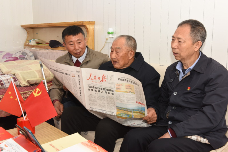 這堂特殊的黨課,讓家庭黨員們再一次感受到這位老共產黨員的初心和使命,同時后輩的黨員也在向老人送、讀黨史書籍、講述新中國的快速發展和淮海農場及至家庭中,呈現出一個又一個的新變化時,張國裕老人聽了笑臉如花般地豎起大姆指連聲說“好、好、好!”