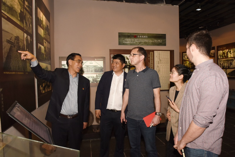 深入推進黨史學習教育走深走實,5月19日上午,我們在農建四師陳列館中看到,有2名中德作物生產與農業技術示范園的德國專家在翻譯的陪同下,也隨著黨支部20多名黨員一起,來到淮海農場紅色教育基地,體驗黨史學習和軍墾傳統文化實境教育之旅活動,感受時下火熱的“紅色教育”。