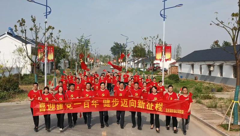 農場公司領導班子成員以普通黨員身份參加活動,與54黨員、積極分子一起圍起長長的橫幅,揮舞著鮮艷的黨旗,在音樂的伴奏下高聲合唱《沒有共產黨就沒有新中國》,在改造一新的寶農路上開始健步走活動,將黨史學習教育融入在健步行當中,既鍛煉了身體,又提振了精氣神,堅定跟黨走、推進寶應湖高質量發展的信心和決心,學習并弘揚偉大精神。