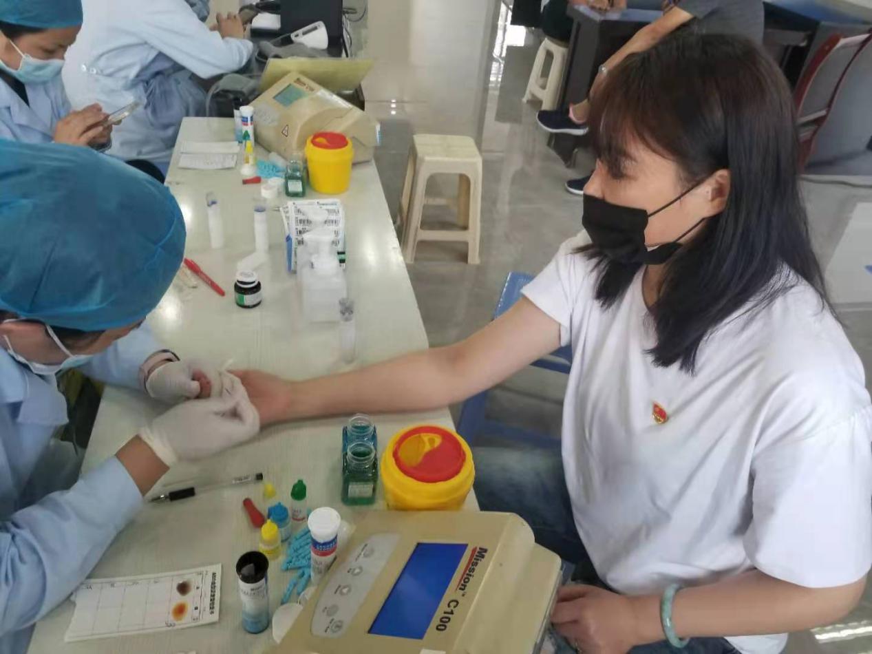 黨員干部紛紛響應、踴躍報名參加獻血活動,走前列、做表率,本次報名無償獻血人員7人,5名同志符合采血標準,累計獻血2000毫升,其中一名黨員同志獻血高達10次,為無償獻血爭當了表率。在醫務人員的指導下,大家有序完成填表登記、測量血壓、采血化驗等工作,整個過程井然有序,現場洋溢著濃濃溫情。