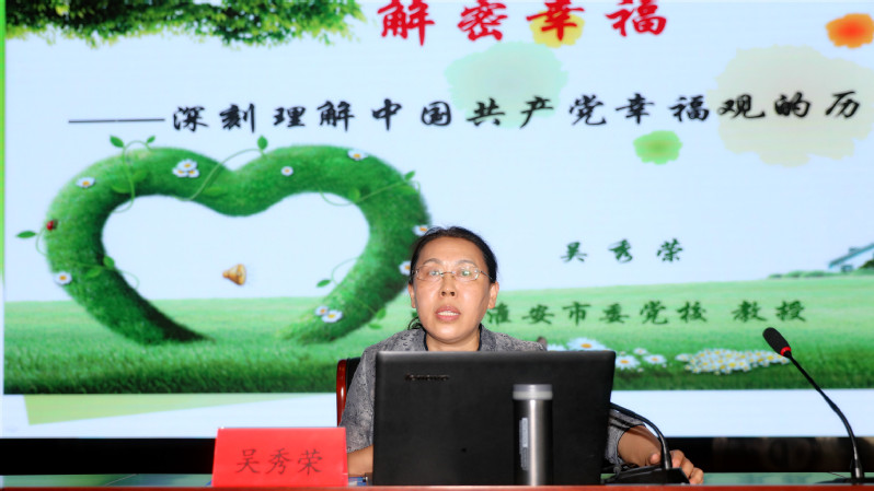 淮安市委黨校副教育長、教授吳秀榮應(yīng)邀到場為廣大黨員職工作《解密幸福--深刻理解中國共產(chǎn)黨幸福觀的歷史演進》專題宣講。“我們黨的百年歷史,就是一部踐行黨的初心使命的歷史,就是一部黨與人民心連心、同呼吸、共命運的歷史。”宣講以習近平總書記講話為開篇,依次從幸福的本質(zhì)、中國共產(chǎn)黨幸福觀歷史演進、中國共產(chǎn)黨的成功原因剖析三個方面逐層推進,著重從物質(zhì)生活和精神生活相統(tǒng)一、享受相統(tǒng)一、個人幸福和集體幸福的統(tǒng)一分析了中國共產(chǎn)黨幸福觀歷史演進,剖析了中國共產(chǎn)黨成功的原因,宣講還從四個方面詳細闡述了習近平的幸福觀:傳承和發(fā)展了馬克思主義幸福觀、創(chuàng)新和超越了中國傳統(tǒng)幸福觀、激蕩了個人層面的奮斗精神、彰顯了領(lǐng)導層面的擔當氣派。宣講最后以“幸福,不僅僅是名詞;幸福,更是動詞﹍﹍”為結(jié)尾,給人啟迪,發(fā)人深思。
