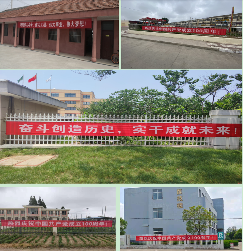 為慶祝中國共產(chǎn)黨成立100周年,近日來,淮海農(nóng)場有限公司在各單位廣泛開展慶祝建黨一百周年宣傳工作,通過懸掛橫幅,電子顯示屏出示標(biāo)語,櫥窗出新、宣傳板展示等多種形式,在農(nóng)場場域內(nèi)營造同慶百年華誕、共鑄歷史偉業(yè)的濃厚氛圍。農(nóng)場公司在各個單位重要場所懸掛黨史宣傳橫幅50幅,在職工休閑體育運(yùn)動廣場樹立宣傳板30塊,在淮海路搭建跨路燈光宣傳廣告牌一座、路邊新建36座黨史及軍墾文化宣傳燈箱、拉過路黨建百年宣傳標(biāo)識彩旗近20條,利用LED電子顯示屏滾動播放熱烈慶祝中國共產(chǎn)黨成立100周年等系列宣傳標(biāo)語。農(nóng)場公司在各單位積極開展黨史學(xué)習(xí)教育宣傳活動,旨在引導(dǎo)廣大干部群眾在黨史學(xué)習(xí)教育中“明理、增信、崇德、力行”,牢固樹立正確的黨史觀。學(xué)黨史、悟思想、辦實(shí)事、開新局,以良好的精神風(fēng)貌奮力開啟淮海高質(zhì)量發(fā)展新征程,以優(yōu)異成績迎接建黨一百周年,為淮海爭創(chuàng)省市文明單位貢獻(xiàn)農(nóng)場力量。