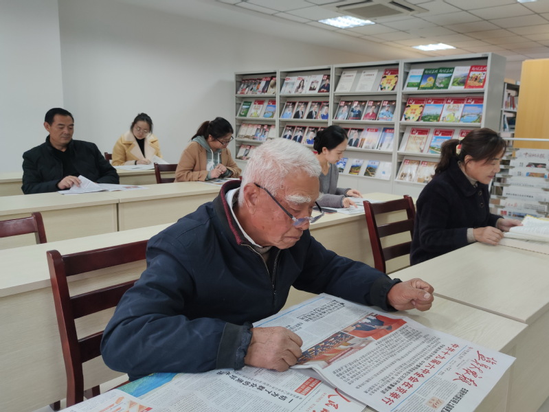 各基層黨支部即日起迅速以各種形式,掀起對六中全會精神進行學習討論和深化吸收。淮海農場社區充分發揮新時代文明實踐所的學習平臺地位,經常更新并充實職工書屋的書報藏書量,引導職工居民緊跟時代脈搏充電學習。圖為11月12日下午,幾名職工居民第一時間在書屋內認真觀看刊有黨的十九屆六中全會精神的報紙。