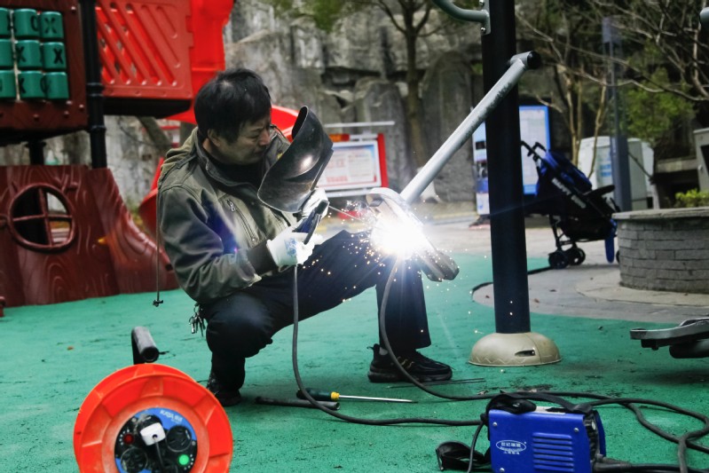 為了增強(qiáng)業(yè)主參與健身鍛煉的積極性,保證業(yè)主的健身安全,通宇公司旗下林景物業(yè)常態(tài)化開展健身器材的日常養(yǎng)護(hù)和專業(yè)維護(hù),及時(shí)消除公共安全隱患,打通全民健身“最后一公里”。圖為林景雅園物業(yè)服務(wù)中心李師傅正在維修園區(qū)內(nèi)的健身器材。