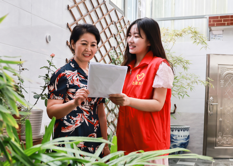 東辛加大“最美綠色家庭”創建宣傳力度,圖為社區黨政辦工作人員來到創建戶家里拍攝宣講視頻。