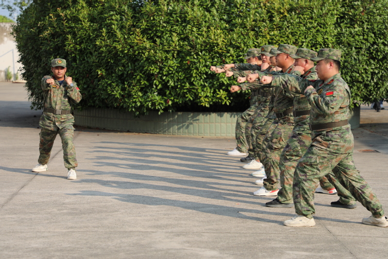 8月11日,江心沙農場隊赴海門區人民武裝部開展“軍墾共建譜新篇雙擁再敘魚水情”慰問和基干民兵實訓活動。圖為江心沙基干民兵應急分隊的隊員們正在訓練。