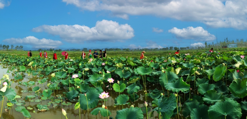 近日,云臺云水灣濕地公園的荷花次第開放,荷塘里朵朵荷花亭亭玉立,碧綠的荷葉鋪滿荷塘,紅與綠相映成趣,散發出陣陣清香,吸引眾多游人駐足觀賞,形成了“人在荷中游,花映游人面”的生動畫面。(此圖刊載于8月2日《農民日報》)