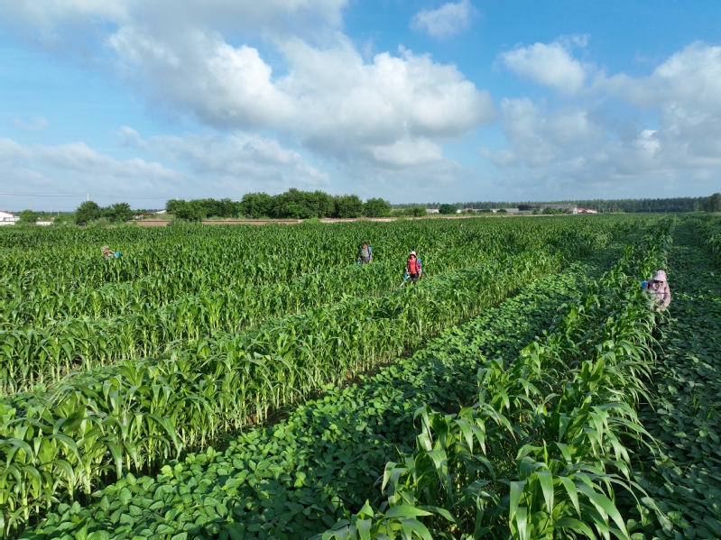 7月下旬以來,為促使玉米根莖葉同步良好發育、促進玉米穗大粒多飽實,同時兼顧大豆生長過程中對肥料的不同需求,蘇墾農發淮海分公司對玉米、大豆復合種植的玉米穗肥,采取專用施肥機和人工定點施肥的方法,有效地保證了玉米穗期營養的供給。圖為淮海分公司第四生產區34大隊在組織專業施肥隊在施玉米穗肥。
