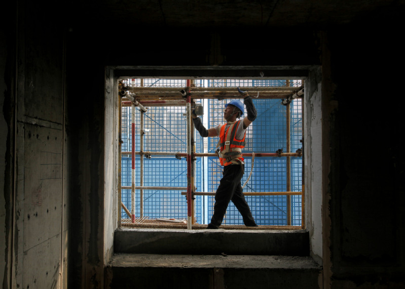 通宇公司牢固樹立安全發展的理念,把安全生產擺在首要位置,積極開展安全隱患排查工作。圖為潤悅府腳手架工人開展日常安全檢查與維護。